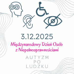 Dziś 3 grudnia obchodzimy Międzynarodowy Dzień Osób z Niepełnosprawnościami. Na pewno wielu rodziców, opiekunów i samych osób w spektrum autyzmu zastanawia się czy autyzm to niepełnosprawność? Zapraszam do wspólnej refleksji.