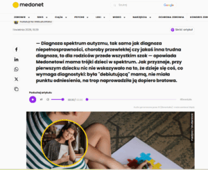 W dniu 1 kwietnia na portalu medonet ukazał się tekst na temat diagnozy spektrum autyzmu, którego autorką jest Katarzyna Mieczkowska. Oczekiwanie na diagnozę autyzmu ciągnie się latami, a kwestionariusze są trudne do