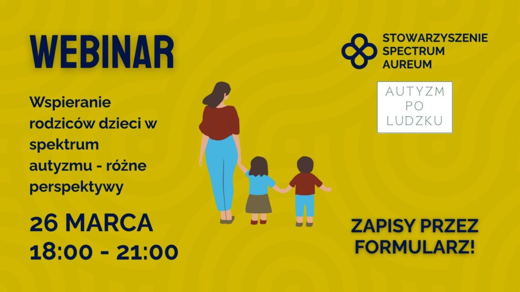 Zapraszam na webinar organizowany wspólnie ze Stowarzyszeniem Spectrum Aureum pt „Wspieranie rodziców dzieci w spektrum autyzmu – różne perspektywy”.