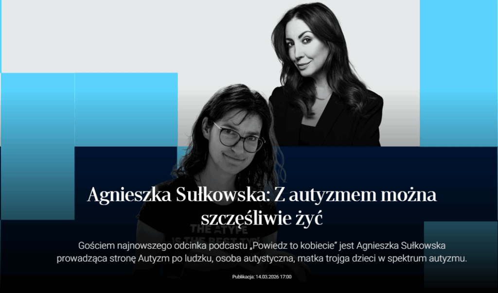Podcast ukazał się na portalu kobieta – https://kobieta.rp.pl/wywiad/art43961901-agnieszka-sulkowska-z-autyzmem-mozna-szczesliwie-zyc