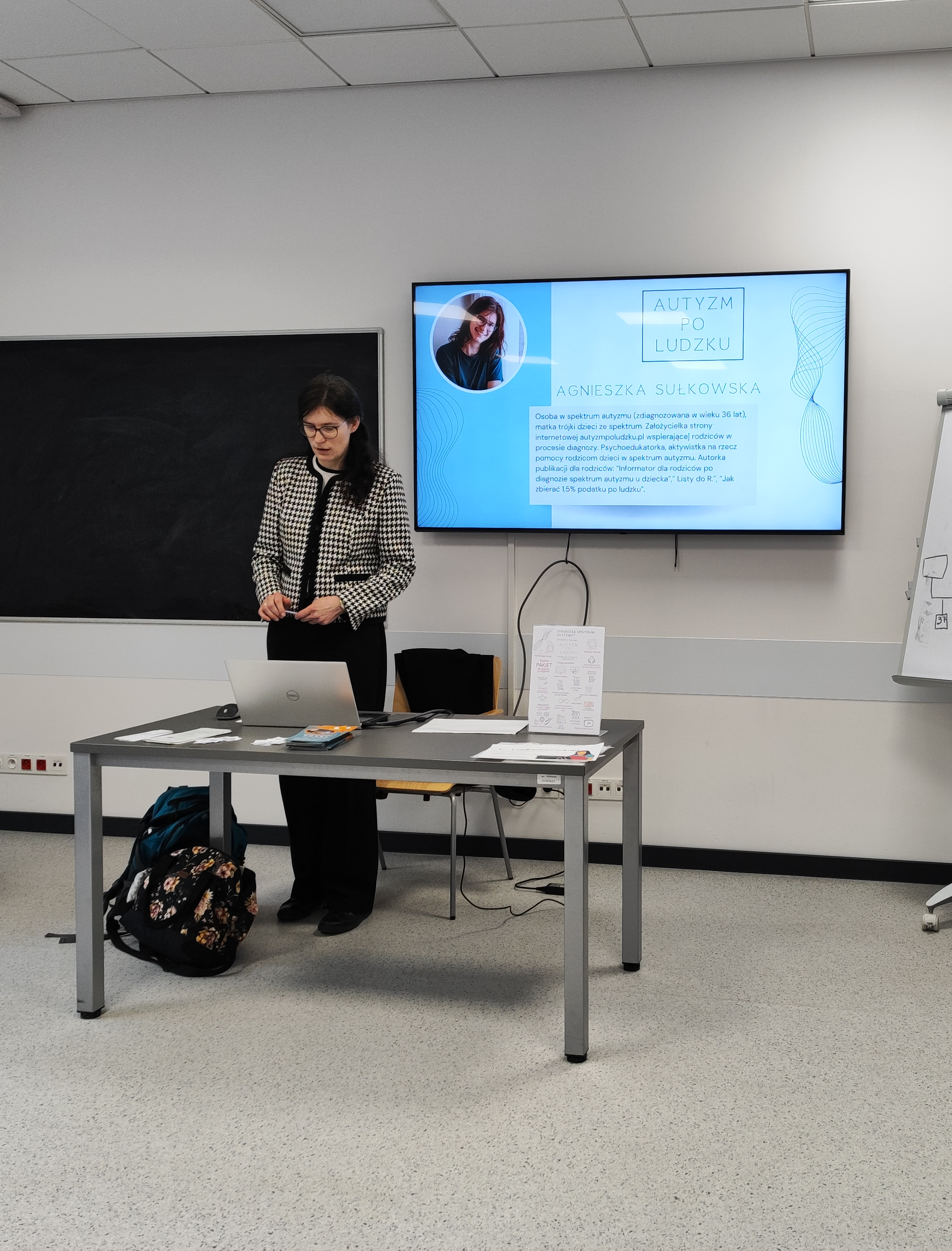 W dniu 30.03.2026 kolejny raz miałam okazję spotkać się ze studentami psychologii warszawskiej Akademii Pedagogiki Specjalnej (APS). Rozmowy te dają mi ogromnie dużo satysfakcji, a studentom możliwość poznania spektrum autyzmu z perspektywy rodzica-praktyka. Spotkanie te są dla mnie bardzo ważne. Do tej pory odbyło się ich już kilka więcej piszę tutaj – Spotkania ze studentami.