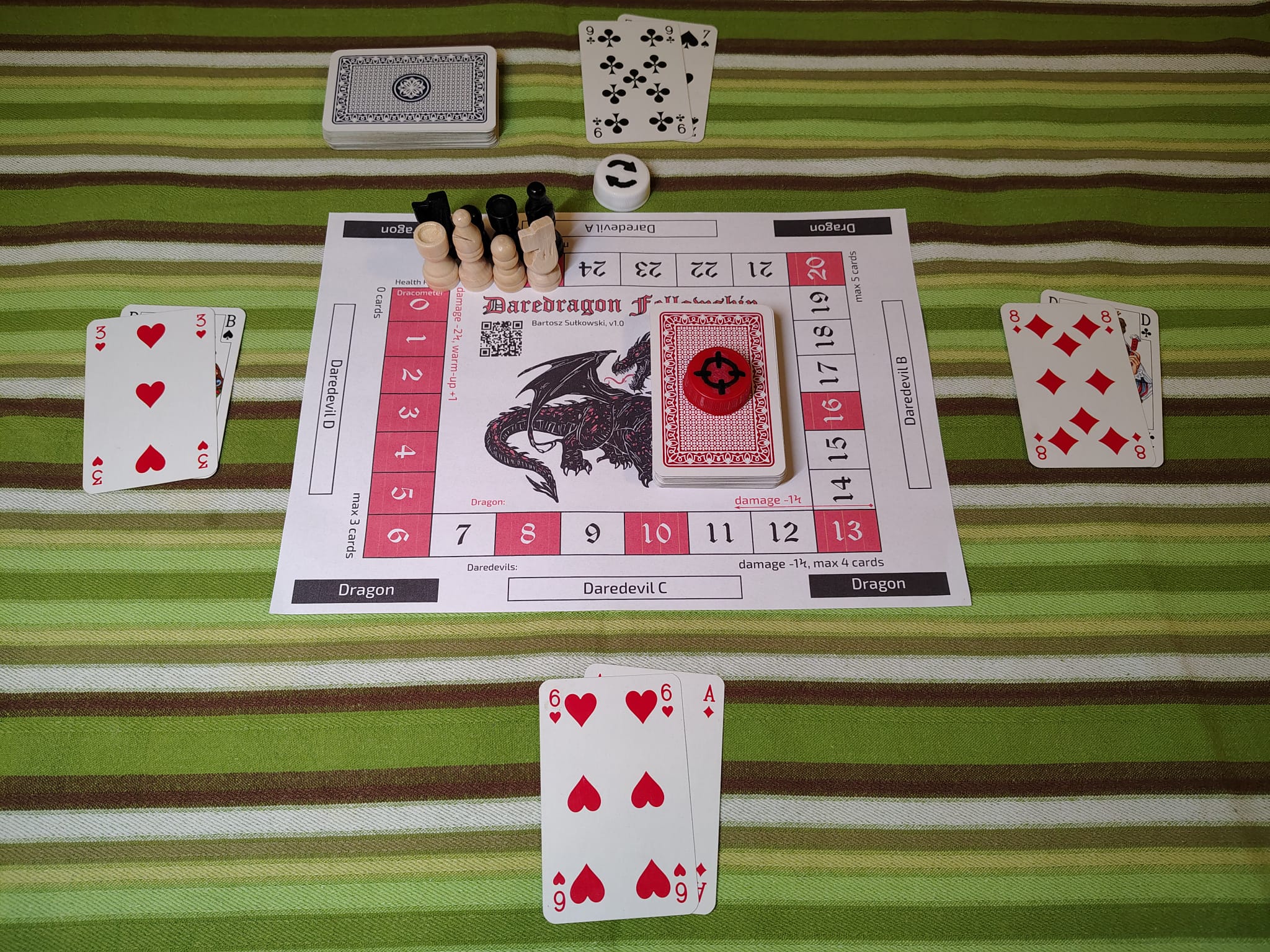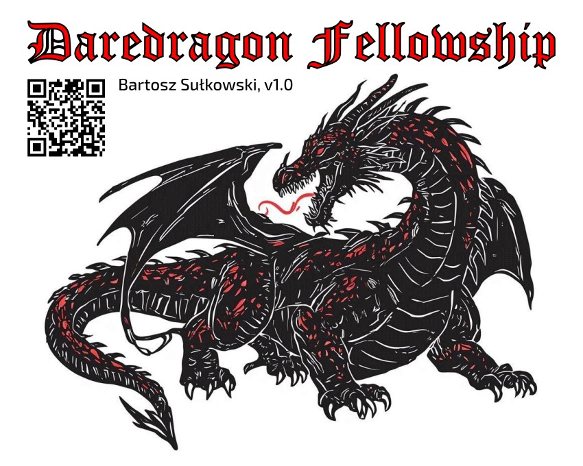 Szczegółowy opis, instrukcja, przykładowa rozgrywka i plansza do wydruku zamieszczone są w repozytorium w serwisie Github: bsulkowski/daredragon-fellowship